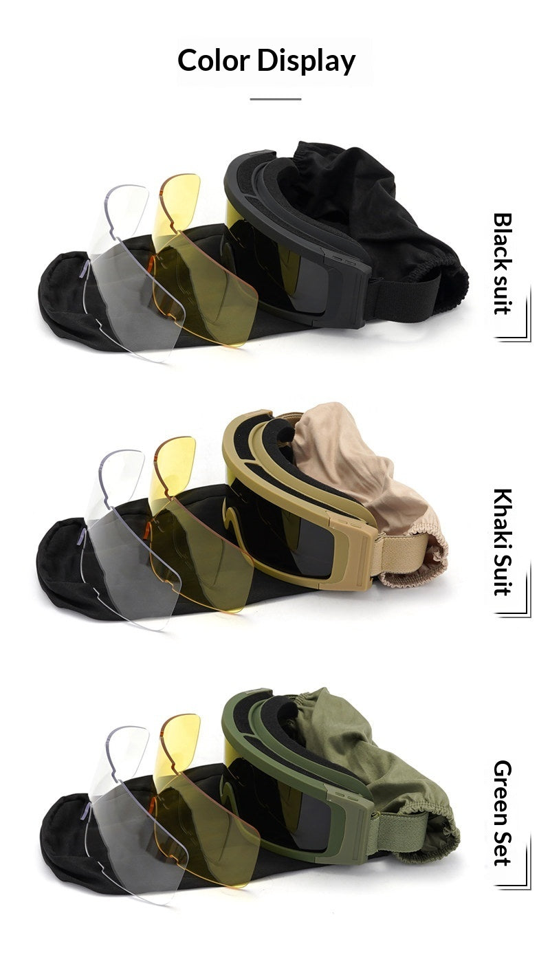 Color classification: Black three lens anti fog set, Khaki three lens anti fog set, Green three lens anti fog set